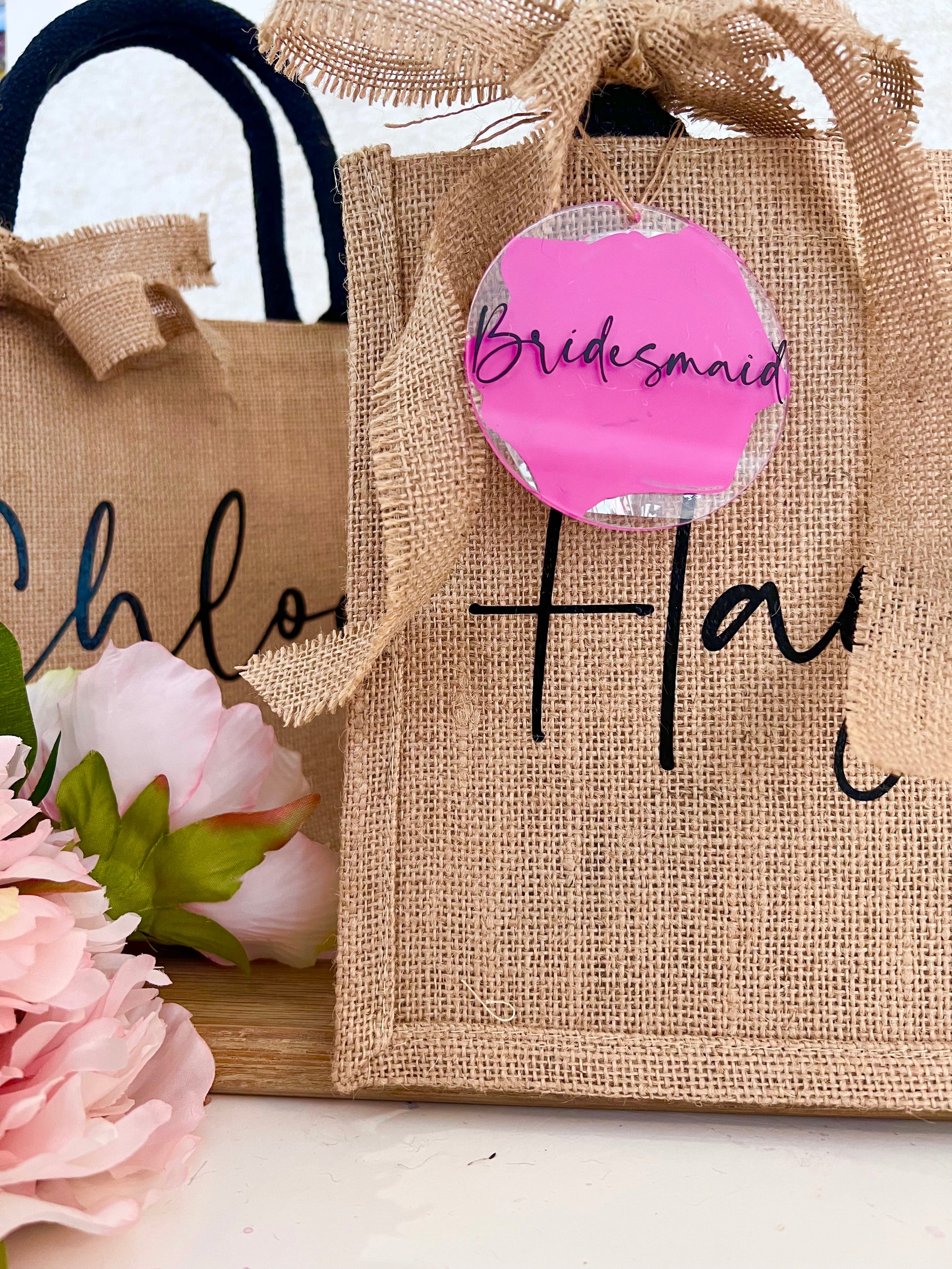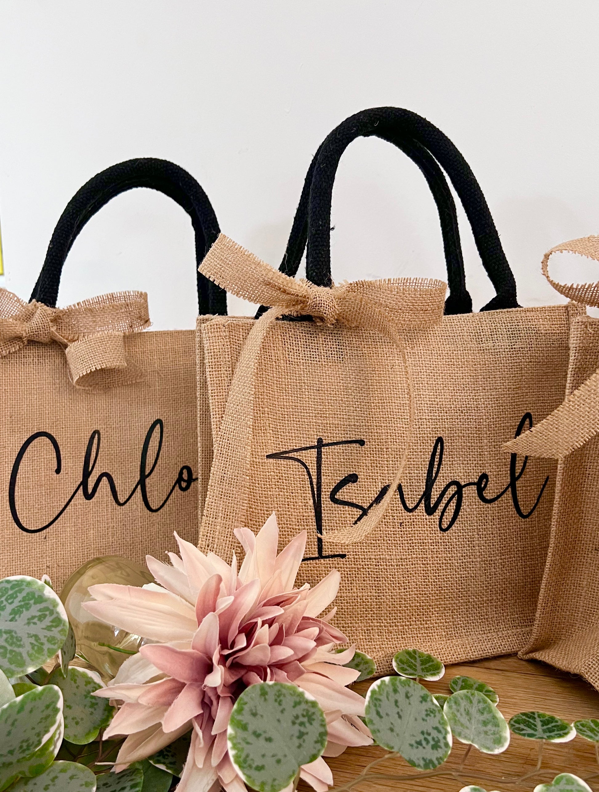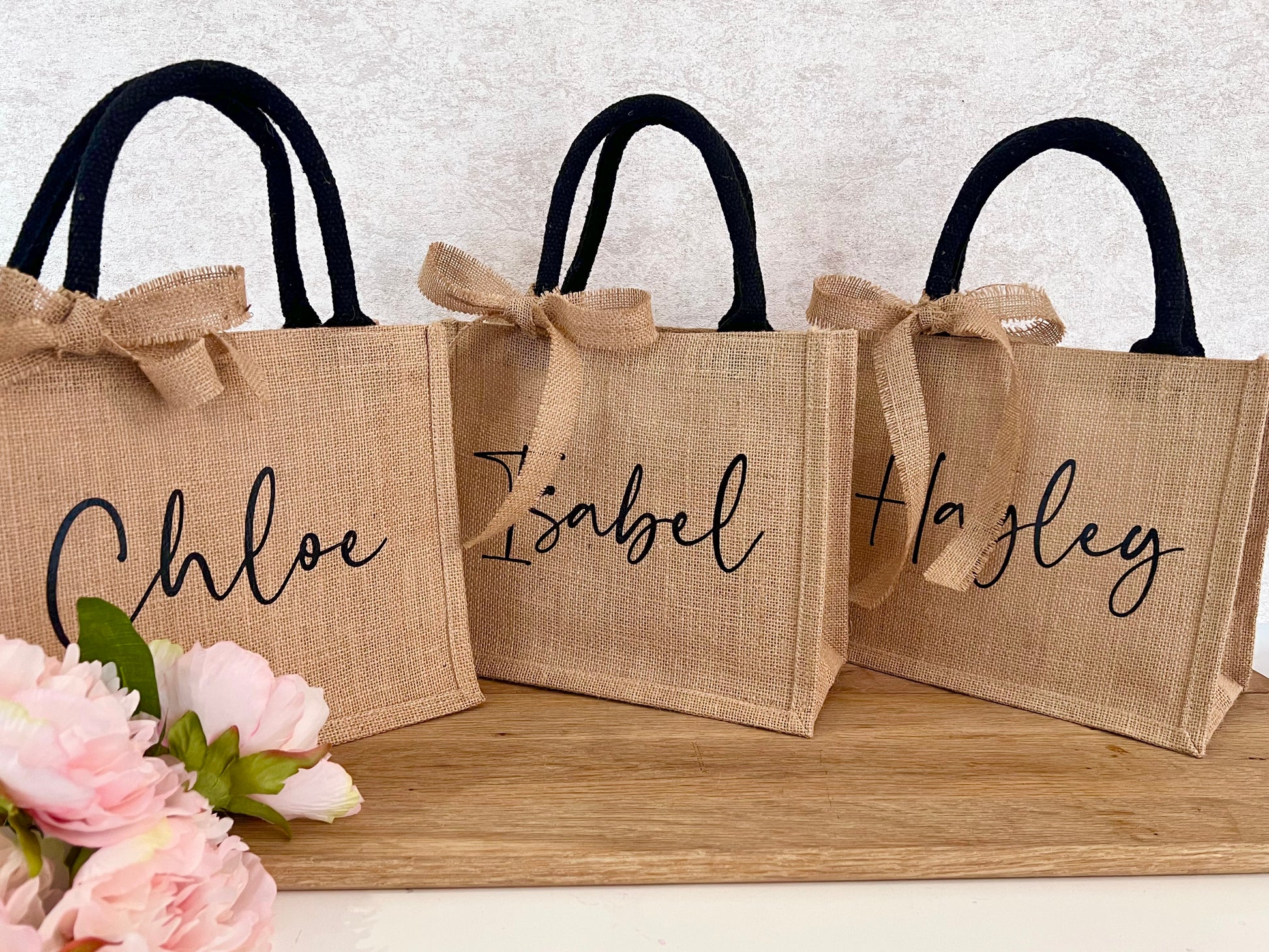 Personalised Jute Bag, Bridesmaid Jute, Bridesmaid Gift, Reusable Shopping Bag, Gift Bag, Custom Jute, Maid of Honour, Flower Girl