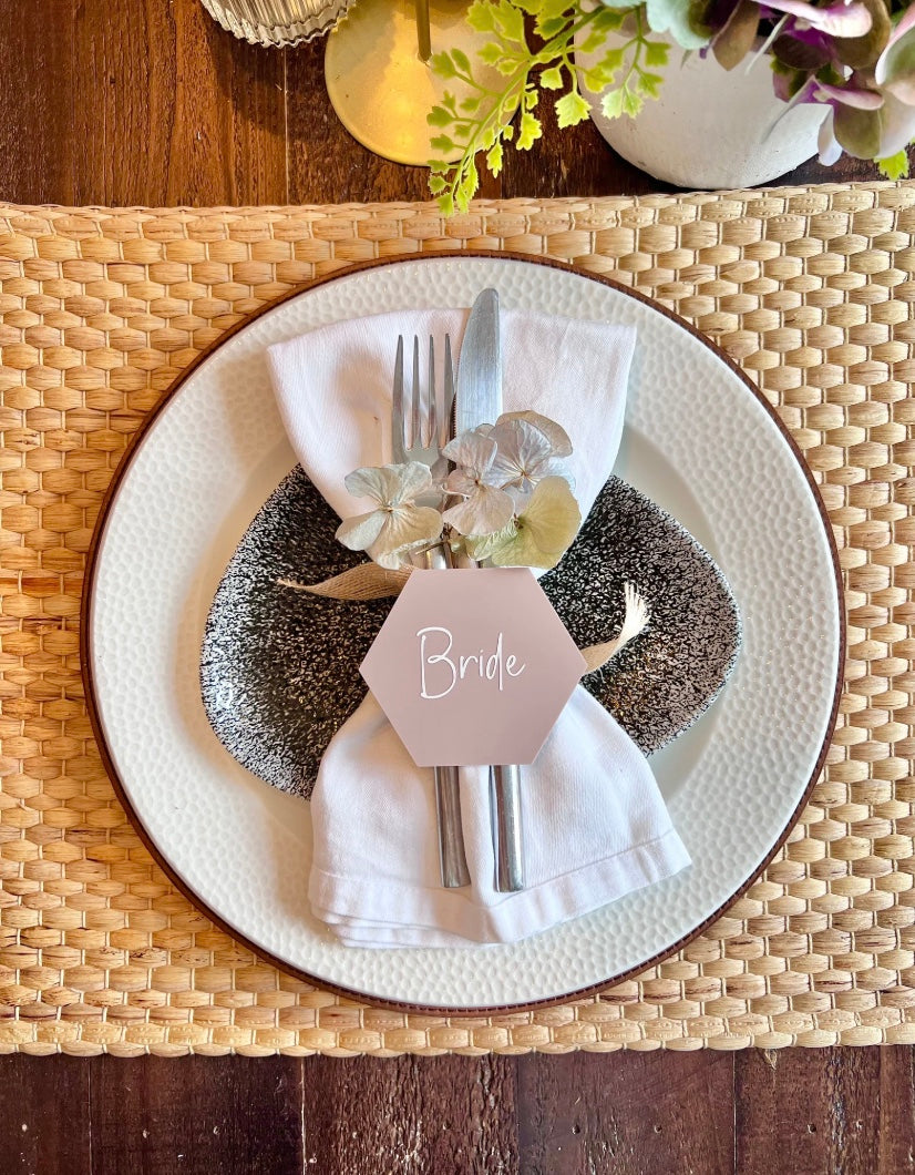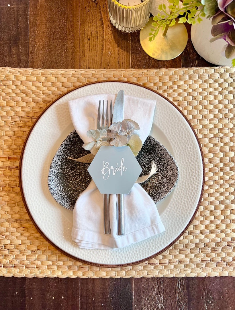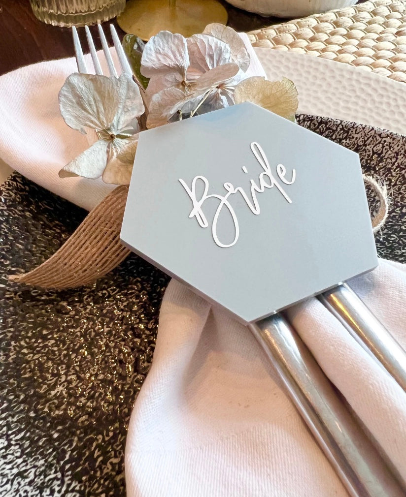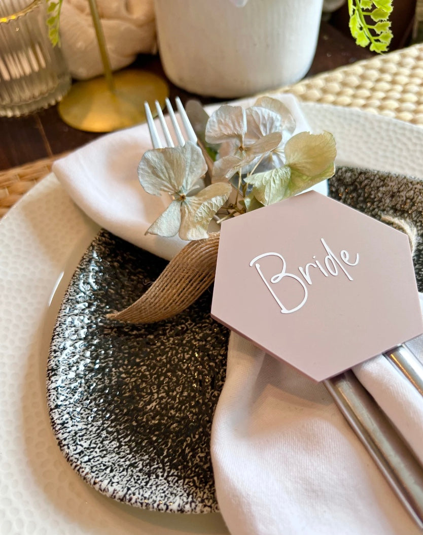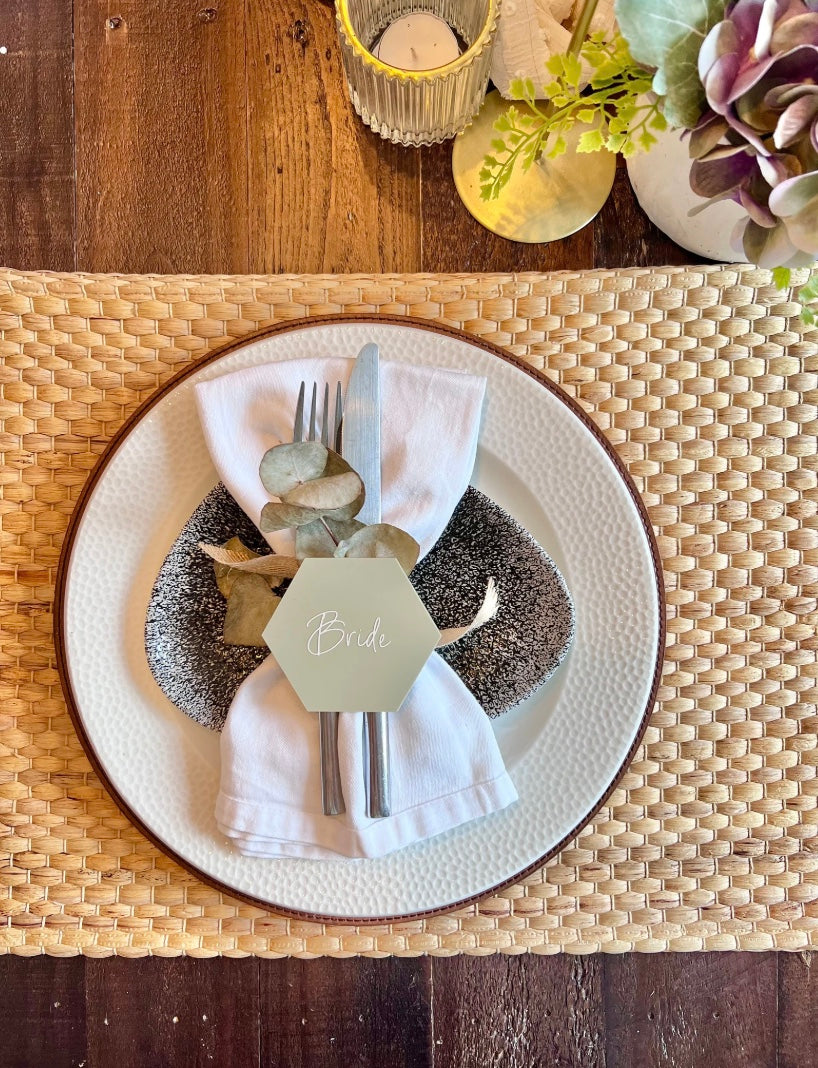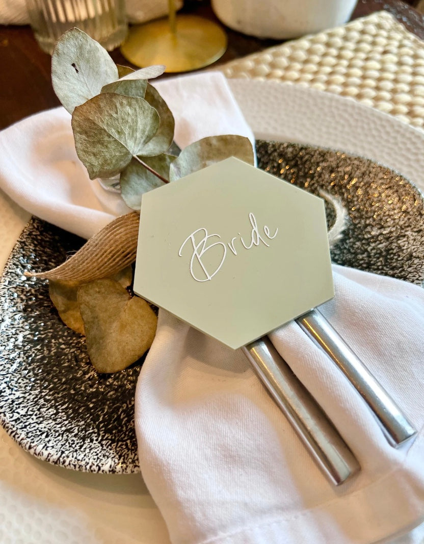 They are made using premium 3mm thick acrylic and 7cm x 8cm in size, perfect for every place setting for your wedding, party or special occasion!