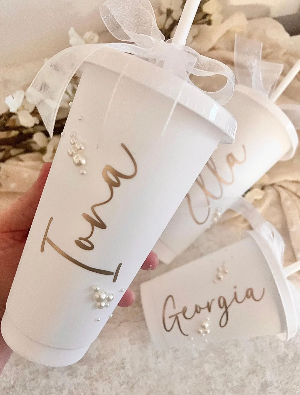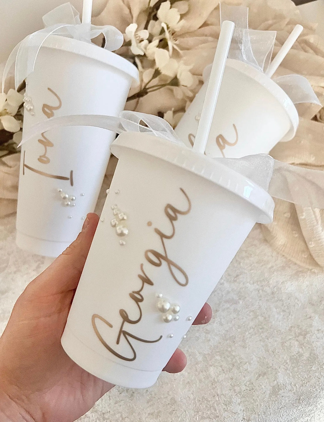My pearly cold cups are personalised with a name of your choice, a colour of your choice in two sizes