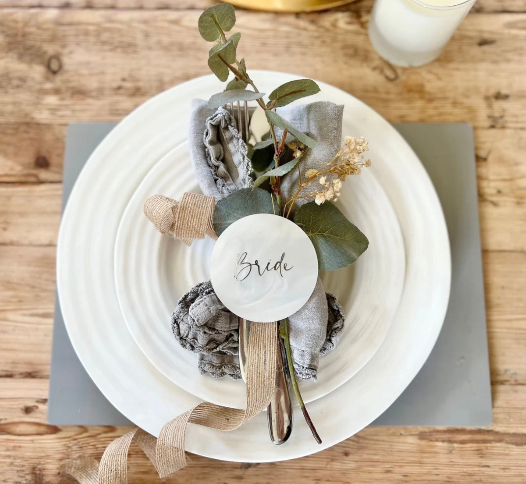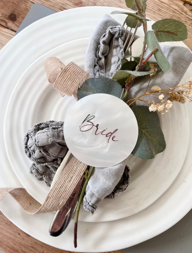 They are made using premium 3mm thick acrylic and 7cm in size, perfect for every place setting for your wedding, party or special occasion!